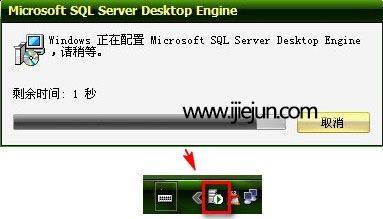 雙擊MSDE2000處,出現下面這個對話框,這就表示在安裝數據庫了。
